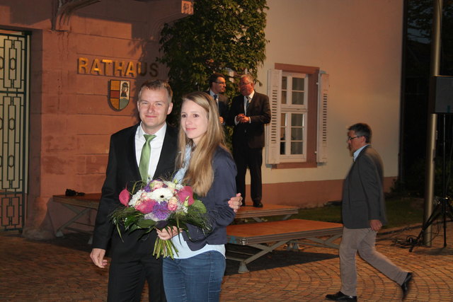 Berghaupten (rek). Überraschend hat der 31-jährige Philipp Clever im ersten Wahlgang die Bürgermeisterwahl um die Nachfolge von Jürgen Schäfer gegen drei Mitbewerber gewonnen. Als Schäfer, der aus Altersgründen nicht mehr antrat, das Ergebnis von 51,2 Prozent für Clever verlas, fielen sich Clever und seine frau Viktoria glücklich in die Arme.