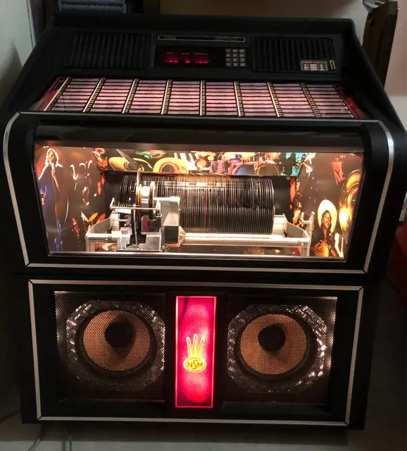 Musikbox,Jukebox funktionsfähige Schallplattenbox NSM City 4 für / mit 80 Schallplatten, mit sichtbarer Abspielung, kompl. an Liebhaber zu verkaufen, (siehe Fotos), Maße ca. 93 x 103 x 63, Gewicht ca. 108 kg.