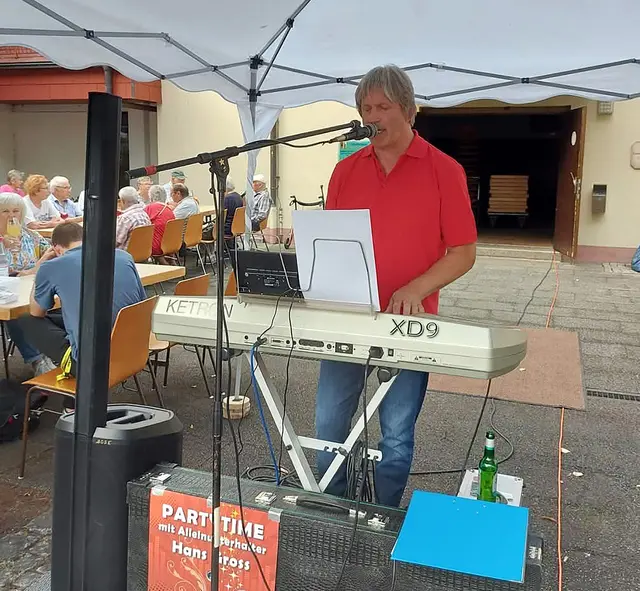Live-Musik von "Hans Gross", der als "Alleinunterhalter" seit 20 Jahren erfolgreich unterwegs ist. Sein Motto ist, Musik soll anderen Menschen Freude bringen und mir Spaß machen. Der Eintritt ist frei. Es gibt eine Hutsammlung für den Musiker.
