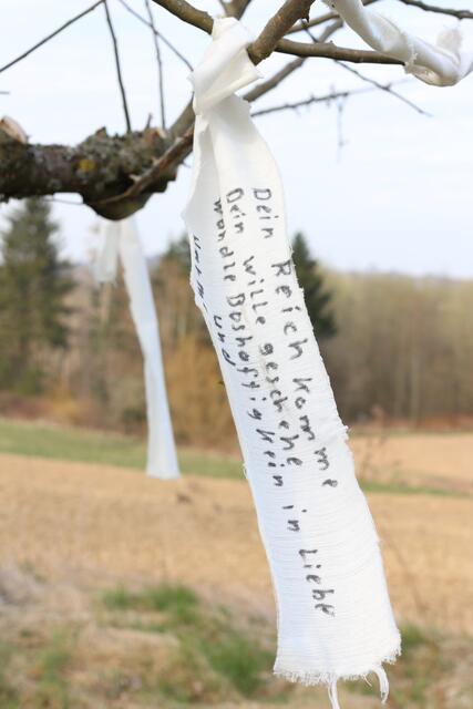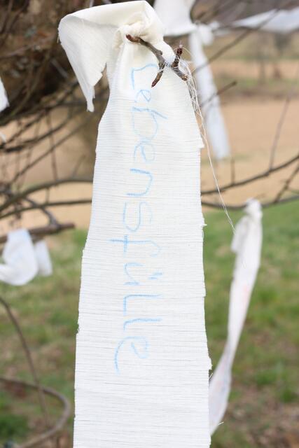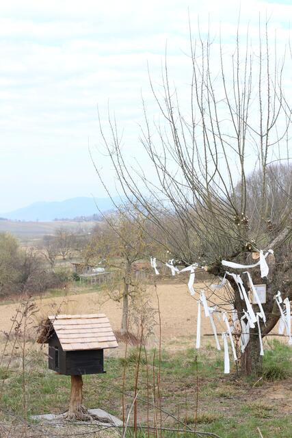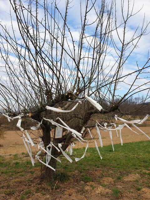 Ganz langsam erwacht die Natur und lädt zu einem Spaziergang ein. In Oberschopfheim, im TINA-Natur-Park gibt es wieder neue Ideen. Am Aussichtsplatz beim Bauwagen ist ein Wunschbaum zu finden. Alles ist liebevoll vorbereitet. Von Weitem sieht man schon weiße Fähnchen wehen. Neben dem Baum ist ein kleines Häuschen errichtet. Öffnet man das Türchen, so findet man weiße Bänder, Farbstifte und Schere. Ein Herzenswunsch kann auf ein Band geschrieben und am Baum befestigt werden. Der Wind trägt den Wunsch weiter und auch die Hoffnung, dass dieser Wunsch in Erfüllung geht. Eine schöne Idee, ein schöner Brauch. Etwas Ähnliches habe ich vor langer Zeit bei einer Türkeireise gesehen. Im antiken Ephesus, heute heißt der Ort Selcuk, wurde die berühmte Celsus-Bibliothek aus römischer Zeit ausgegraben. Am Berg weiter oberhalb dieser Bibliothek befindet sich das Haus der Maria. In diesem restaurierten byzantinischen Haus soll der Überlieferung nach Maria, die Mutter Jesu mit Johannes, dem Jünger Jesu, bis zu ihrem Tode gelebt haben. Dieser Ort ist eine viel besuchte Pilgerstätte für Christen und Muslime. Auch dort werden weiße Wunschfähnchen an die Bäume gehängt. Wünsche haben doch alle Menschen.