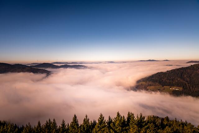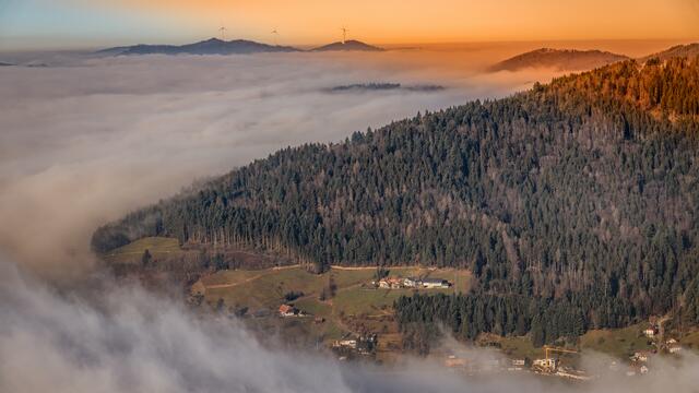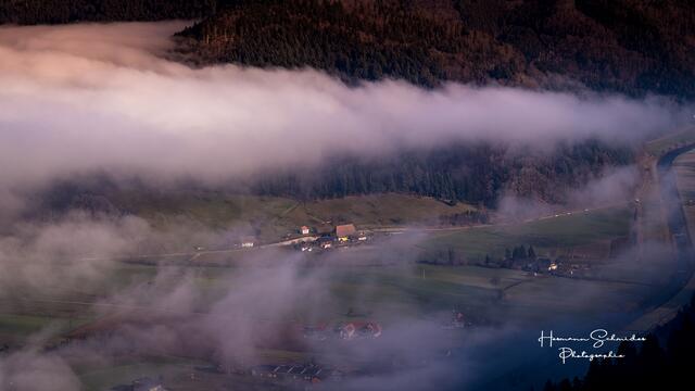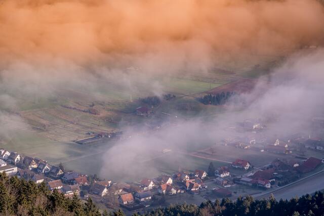 Wer zur Zeit dem Nebel in den Tälern entfliehen möchte muss meist gar nicht so weit fahren, am Samstag war es in Höhenlagen ab 500 m bereits sonnig. Mein Ziel war der Haslache Urenkopfturm mit einer tollen Rundumsicht auf das Kinzigtal. Während Haslach total im Nebel versunken war, war Fischerbach nur teilweise eingetaucht.