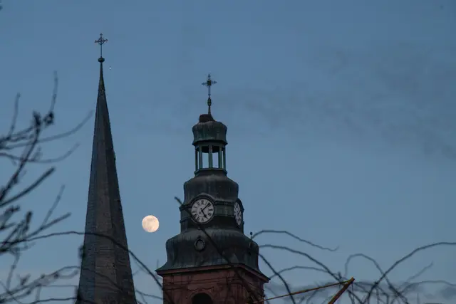 Der Vollmond. zwischen den Haslacher Kirchtürmen eingefangen Haslach 03.02.26 Hermann Schmider Ortenaut