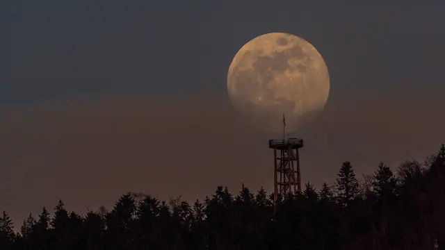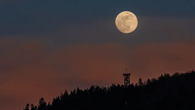 Der Märzvollmond (auch Wurm-, Lenz- oder Fastenmonat genannt) über dem Haslacher Urenkopfturm Haslach 03.03.26 Hermann Schmider Ortenaut