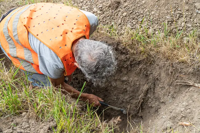 In regelmäßigen Abständen habe sich das kompakte Kleinrammbohrgerät entlang der Graudenzer Straße in den Kinzigdamm vorgearbeitet und ein hohles Bohrgestänge in den Damm getrieben. Dabei seien die anstehenden Erdschichten in das Bohrgestänge gedrückt worden. Über die auf diese Weise gewonnenen Proben würden die Mitarbeitenden der Ingenieurgruppe Geotechnik aus Kirchzarten Aufschluss darüber erhalten, wie sich zum einen der natürliche Boden zusammensetze und zum anderen wie der Damm aufgebaut ist. Für die einzelnen Schichten werden dann, erläutert Dr. Linus von Kuhlberg vom Büro Geotechnik, Bodenkennwerte für die einzelnen Schichten ermittelt.