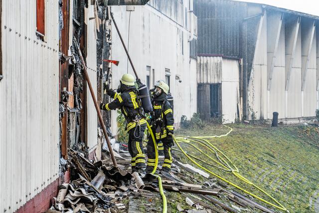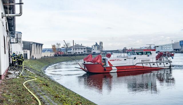 Kehl (st) In einer Lagerhalle im Kehler Hafen hat es am Freitagvormittag, 24. November, gebrannt. Die Löscharbeiten gestalteten sich aus mehreren Gründen schwierig: Das Feuer breitete sich innerhalb der Fassade des Gebäudes in der Weststraße aus, die Feuerwehr musste mit Wärmebildkameras den Brandherd lokalisieren. Außerdem liegt die Rückseite der Halle liegt direkt am Hafenbecken, so dass den Einsatzkräften lediglich ein etwa ein Meter breiter Aktionsraum blieb.