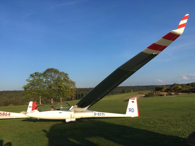 So absolvierte Timo bisher stolze 330 Flüge davon 169 Alleinstarts. Anfangs gemeinsam mit Fluglehrer in verschiedenen im Doppelsitzern ASK13, ASK21 und DUO DISCUS - später dann auf einsitzigen Seglern ASK23, ASTIR und DISCUS.