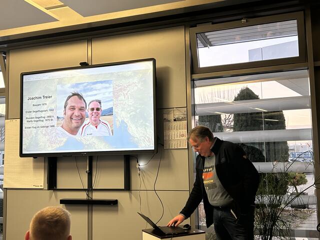 Michael Buchthal vermittelte diese sensationelle Alpenflüge mit perfekten Videos und passender, synchronisierter Musik. Seine überragenden Erfahrungen und Hinweise motivierten die beindruckten Zuhörer nachdrücklich. Joachim Treier, der den vorderen Pilotensitz im DUO einnahm, ist in den Alpen ebenfalls ganz zu Hause. Die Bündelung der großen Flugerfahrungen beider Piloten, sowie auch günstige Randbedingungen führten letztendlich zum erfolgreichen und sensationellen Wandersegelflug.