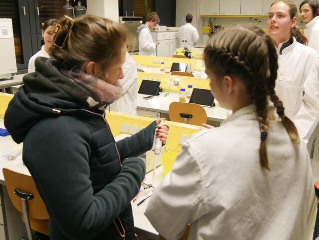 „Wie muss ich die Pipette jetzt halten?“, fragt eine junge Dame im Chemieraum der HLS Offenburg neugierig. Sachkundig erklärt eine Schülerin des biotechnologischen Gymnasiums, wie man mit diesem Werkzeug umgeht.