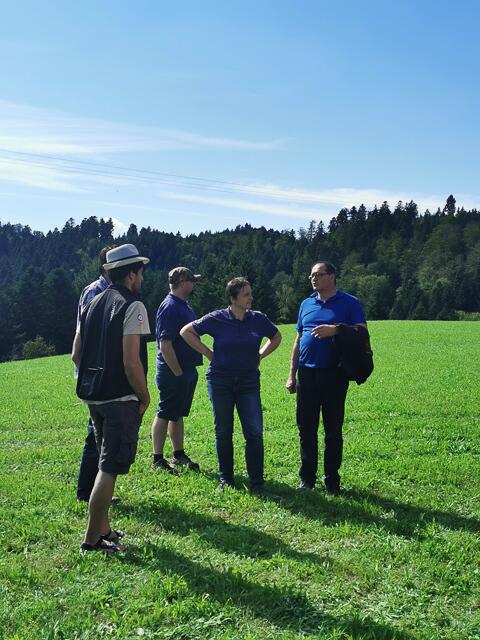 Viel Freude und zufriedene Gesichter nach der Einsaat in Biberach: die Klasse 2 b der Grundschule mit ihrem Klassenlehrer Patrick Berger, Betriebsleiter Mattes Aldrin, Jasmin Welle und das Team vom Abwasser-Zweck-Verband Kinzig- und Harmersbachtal in den grünen Polos, Lilli Wahli, Projektleiterin Blühender Naturpark, Naturpark Schwarzwald Mitte/Nord (im gestreiften Shirt) und hinten rechts Susanne Hauser, Leiterin Kommunikation Volksbank Lahr | Foto: Volksbank Lahr